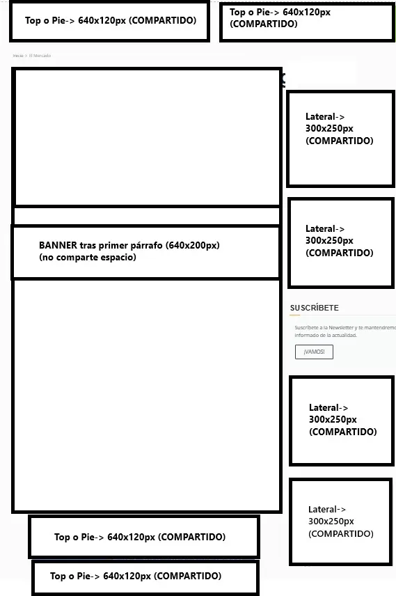 - El formato BOTÓN se publica únicamente en la portada, el resto de los espacios aparecen en la portada de la cabecera contratada y dentro de cada noticia de dicha cabecera.