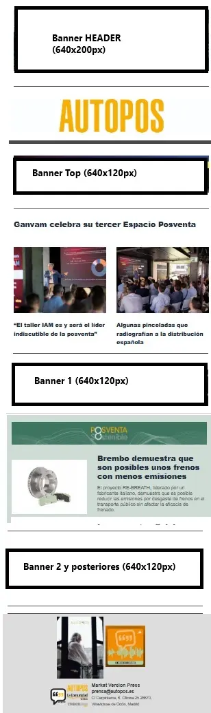 Se contrata el espacio, en una cabecera determinada. Es decir un banner de AUTOPOS únicamente aparecerá en la home de dicha cabecera y en las noticias que dependan de la misma.